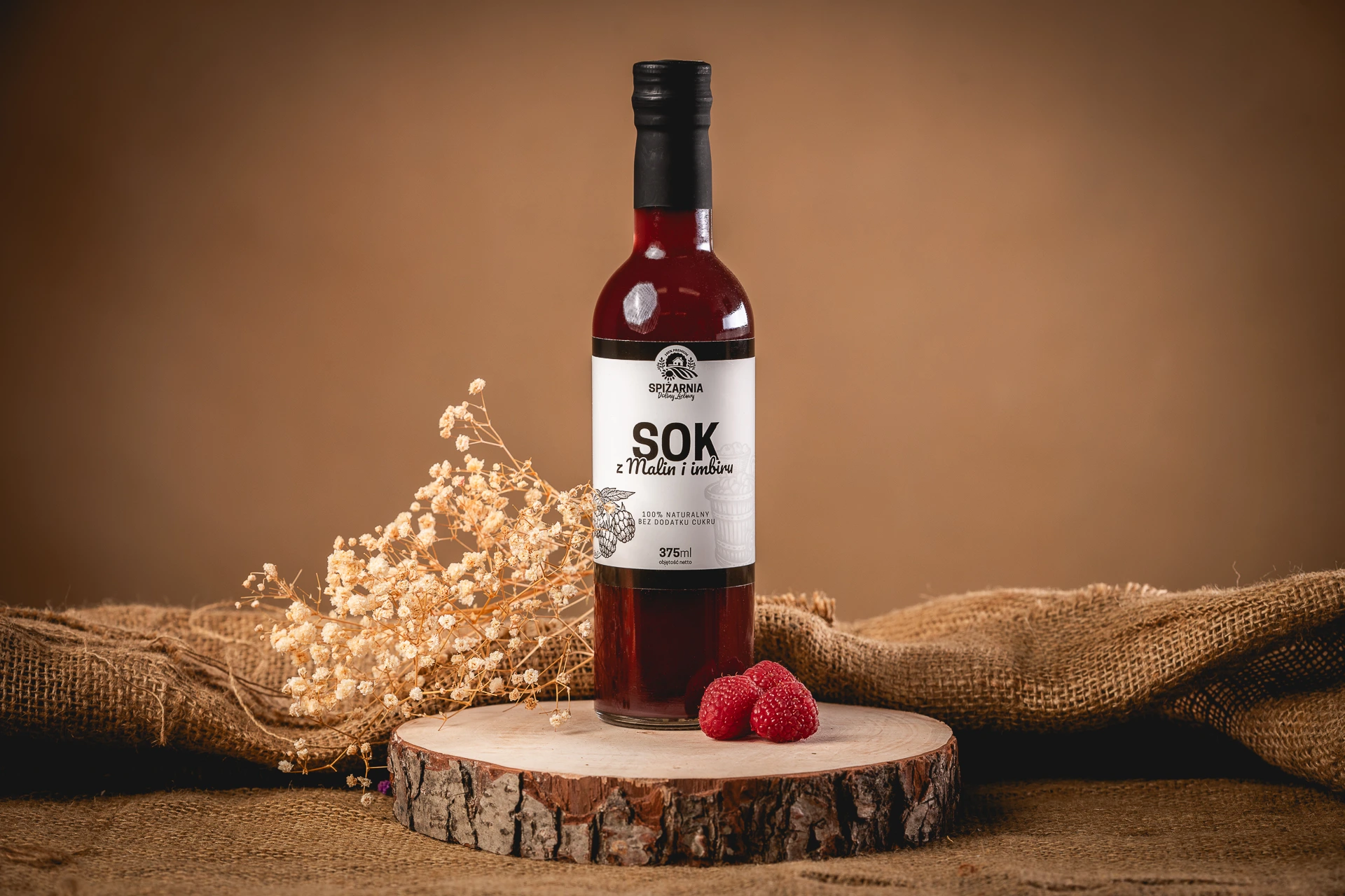 Ten sok to coś więcej niż napój – to domowa apteczka zamknięta w szklanej butelce. Połączyliśmy tradycyjną, polską malinę z rozgrzewającą mocą imbiru, tworząc kompozycję, która stawia na nogi: